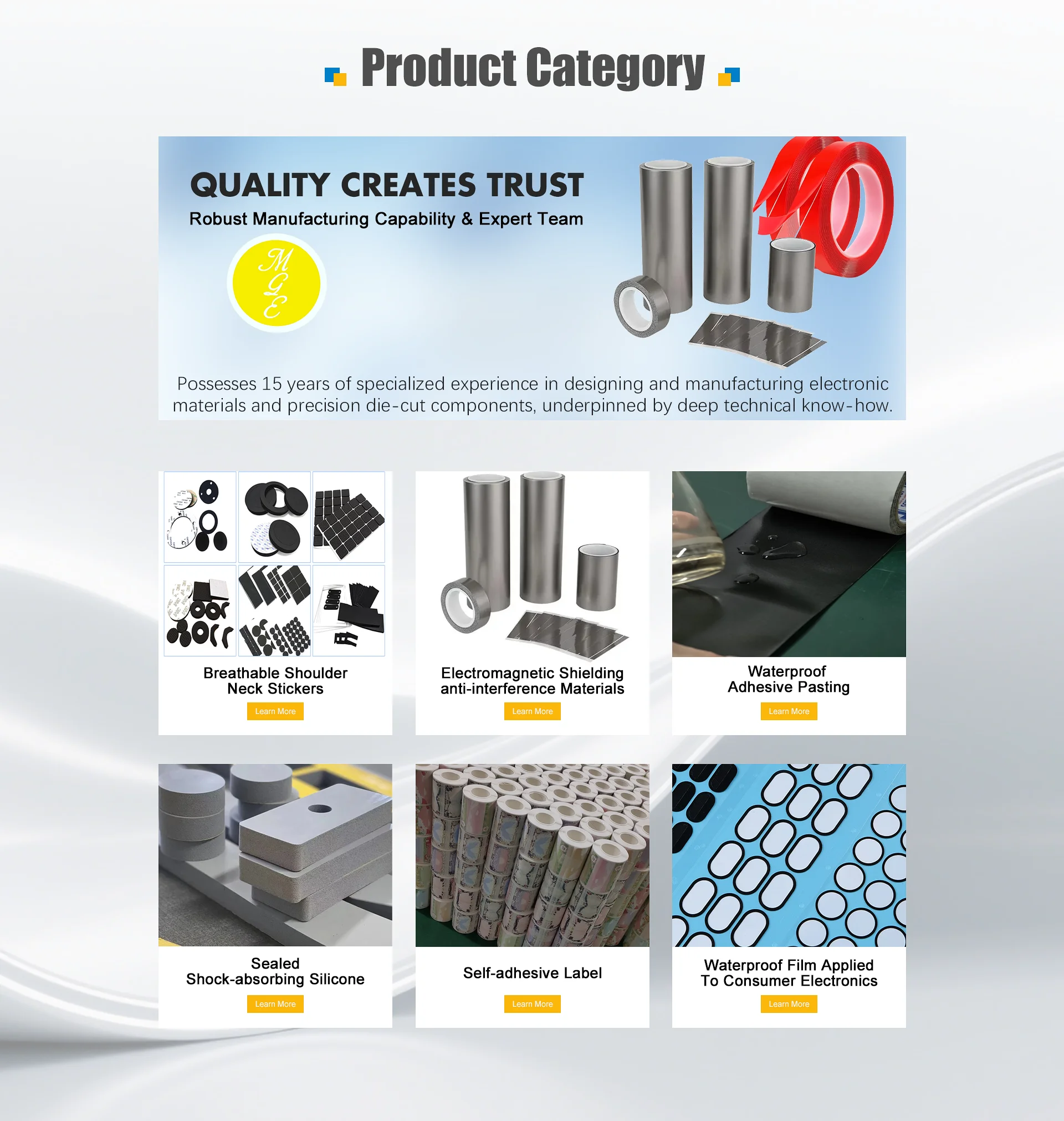 Shenzhen Migeer Technology is a one-stop electronic materials solution provider, specializing in the production and sales of customized acoustic waterproofing (waterproof sound-permeable breathable film), electromagnetic compatibility (shielding materials), cushioning and sealing (PU/EPDM foam), bonding and fixing (adhesives/double-sided tapes), and sealing and shock absorption (silicone/rubber) products.
